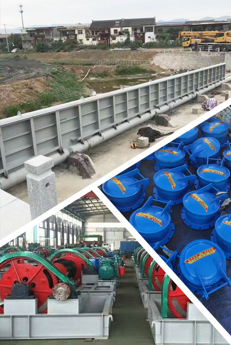 拍门——主要安装在排水管道的尾端,用于防止外水倒灌。材质分为不锈钢、铸铁、型钢、复合材料(玻璃钢)等多种材料。而拍门又分为很多种,比如,浮箱式拍门,平板式拍门等等。